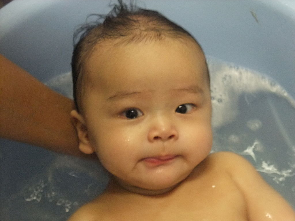 岩岩 6 個月既弟弟飲奶食野最叻! 訓覺都唔錯, 可以一覺訓天光! 要噯佢訓, 不過訓著左係可以放低佢, 識反身, 但都仲係反得左邊姐! Heap up 大約可以支撐 1 分鐘, 俾玩具佢會伸手羅, 會摸人塊面, 扶佢企直腳仔有力, 少少咪腳趾