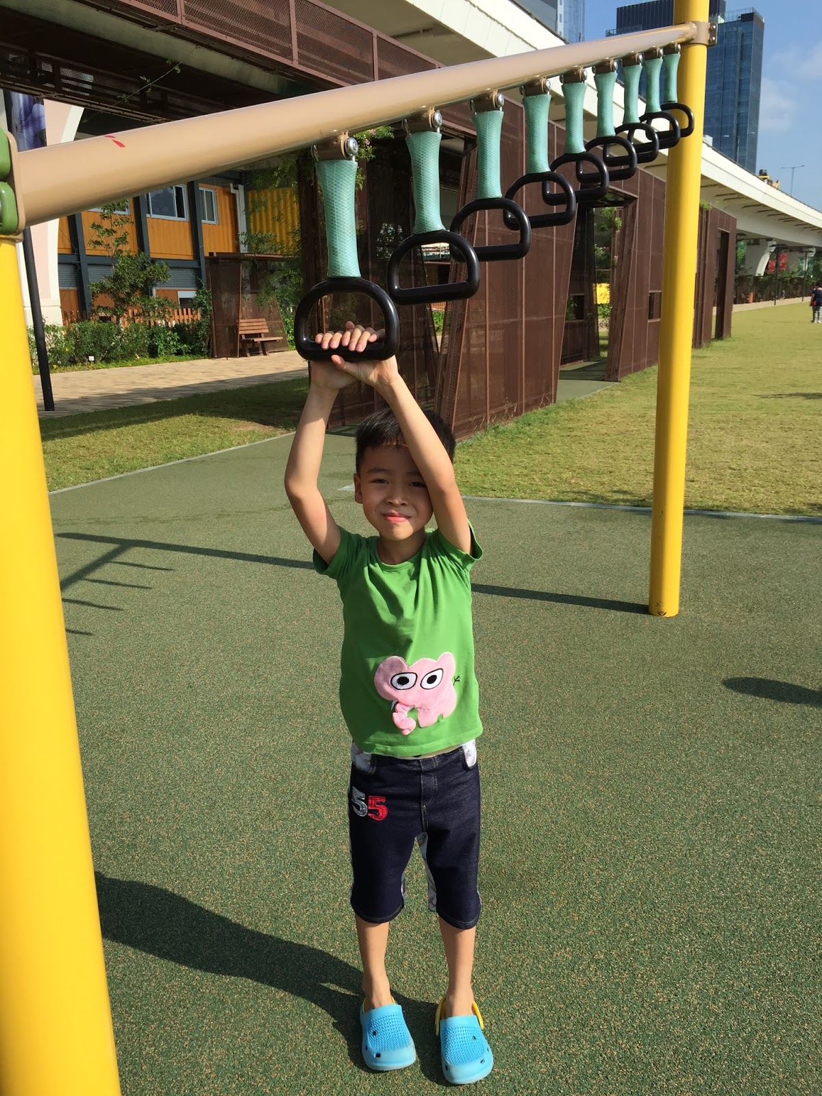 草地隔冇幾遠就有遊樂設施, 仲好新奇添